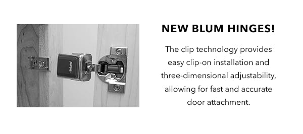 In keeping with our tradition of innovation and desire to push the boundaries of cabinetry, we’re thrilled to announce that Fabuwood is the first cabinet company to utilize cutting-edge clip-on hinges for an entire cabinet line, as all our Allure cabinets will now come equipped with Blumotion compact clip hinges.