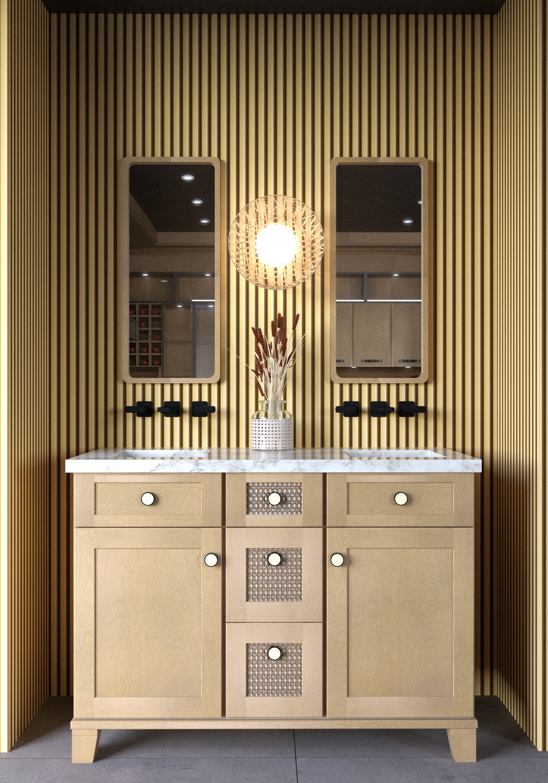 Allure doors feature classic solid wood stiles and rails with an MDF center panel designed to enhance stability and minimize movement. Concealed soft-close hinges ensure precise alignment and controlled closing.