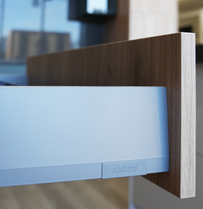 Illume drawers feature the BLUM MERIVOBOX metal drawer system. Concealed full-extension slides with integrated BLUMOTION soft-close technology ensure smooth, quiet operation and dependable performance.