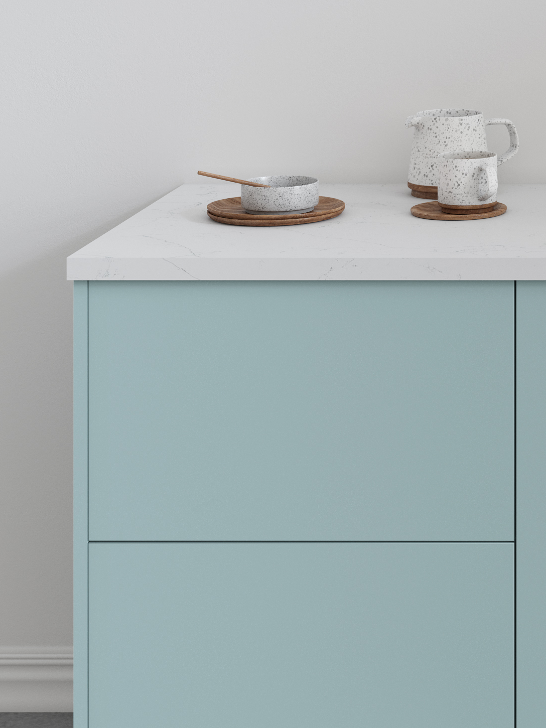 Catalina’s simplistic and modern design lets the smooth matte blend of cool mint and misty jade in Agua Marina shine, adding a soothing vibe to your home.
