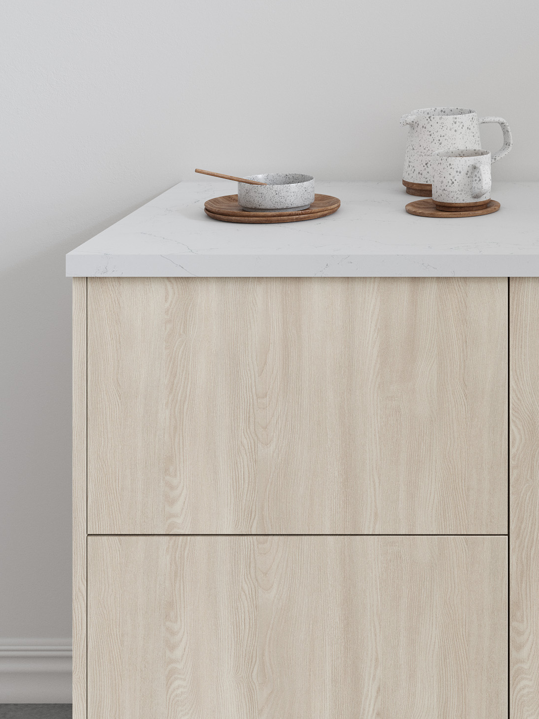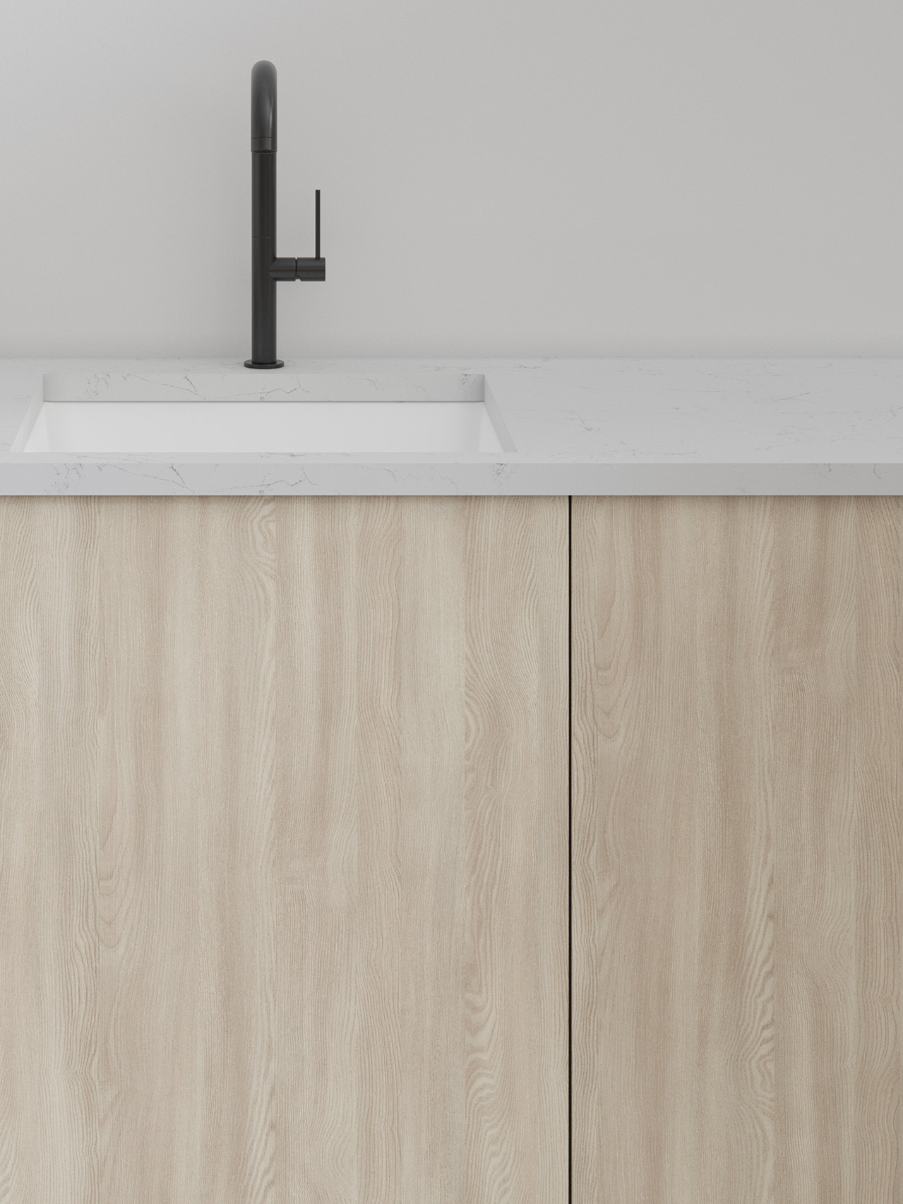 With Catalina’s sleek design, Como Ash 1’s soft, greige tones, and pale driftwood-inspired grain, your space becomes a serene retreat, creating a warm, calming atmosphere.