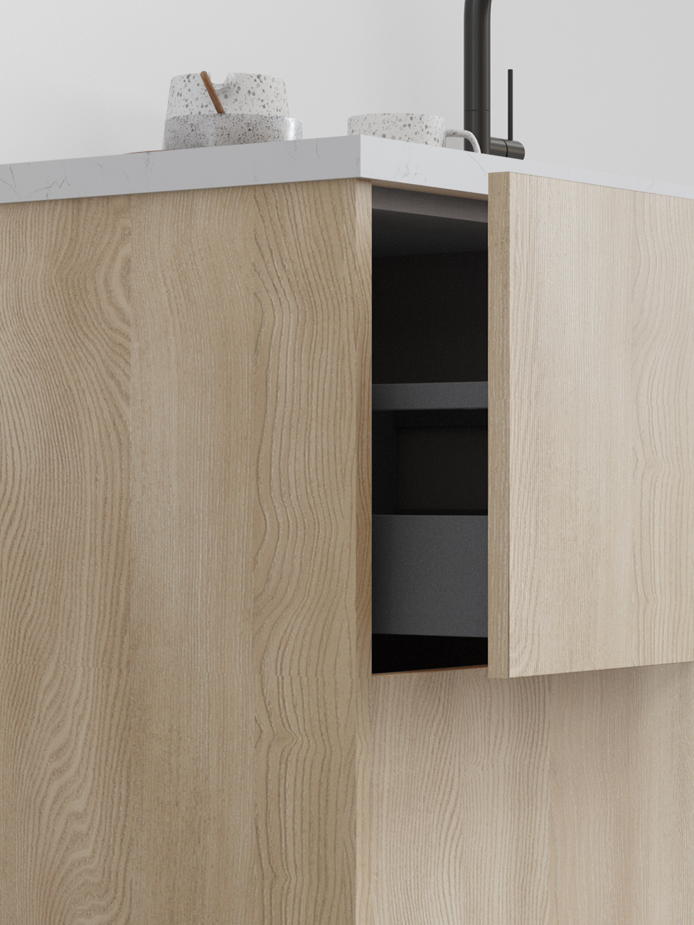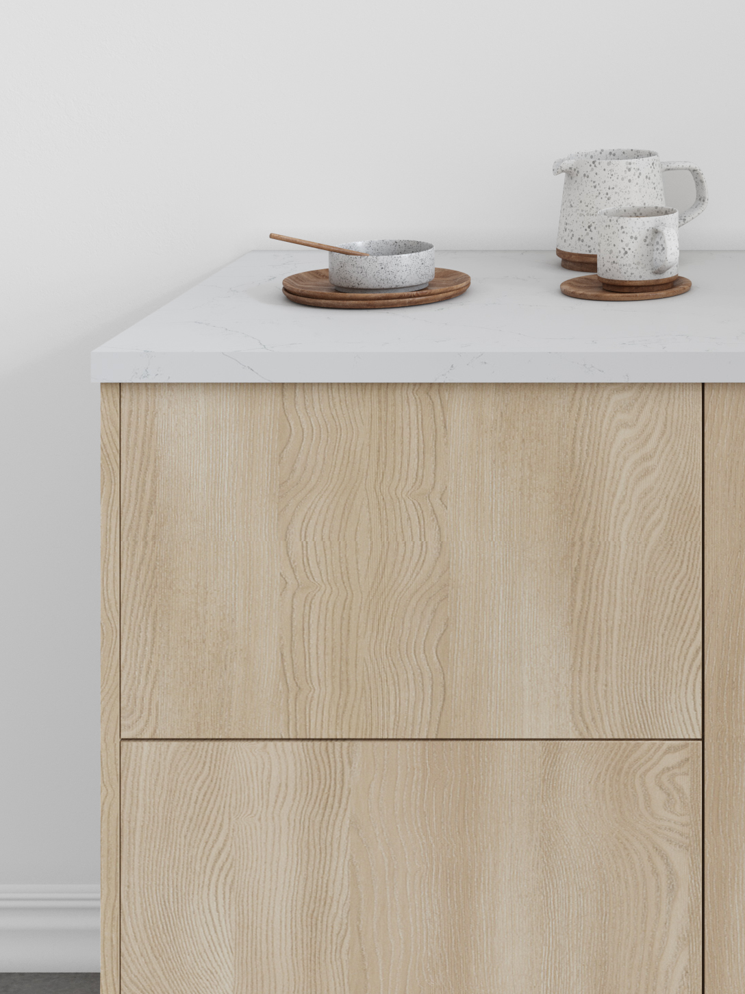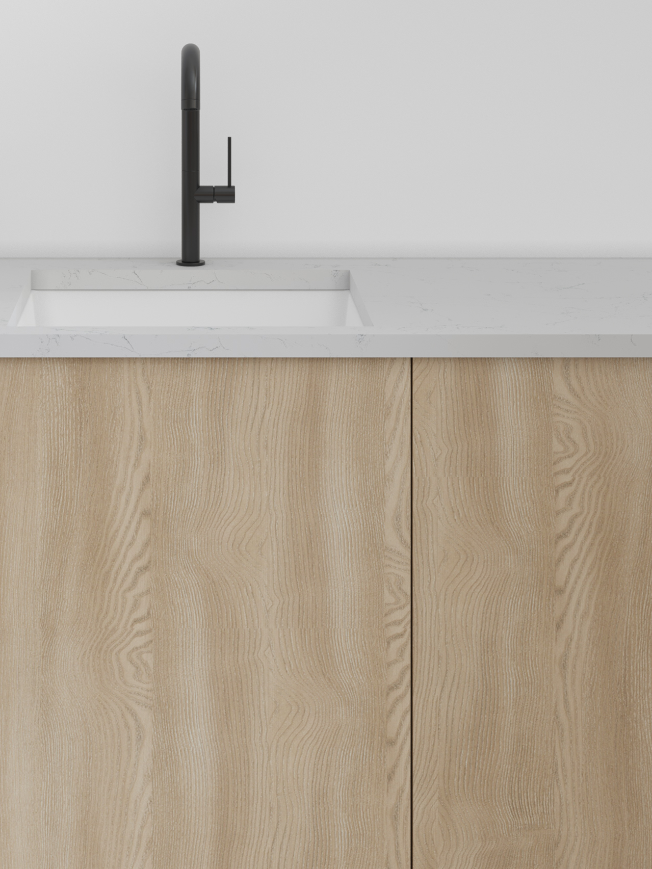Catalina’s minimalist design blends effortlessly with Como Ash 2’s light, wood-like grain and sandy undertones, creating a warm, inviting, and refreshingly modern space.