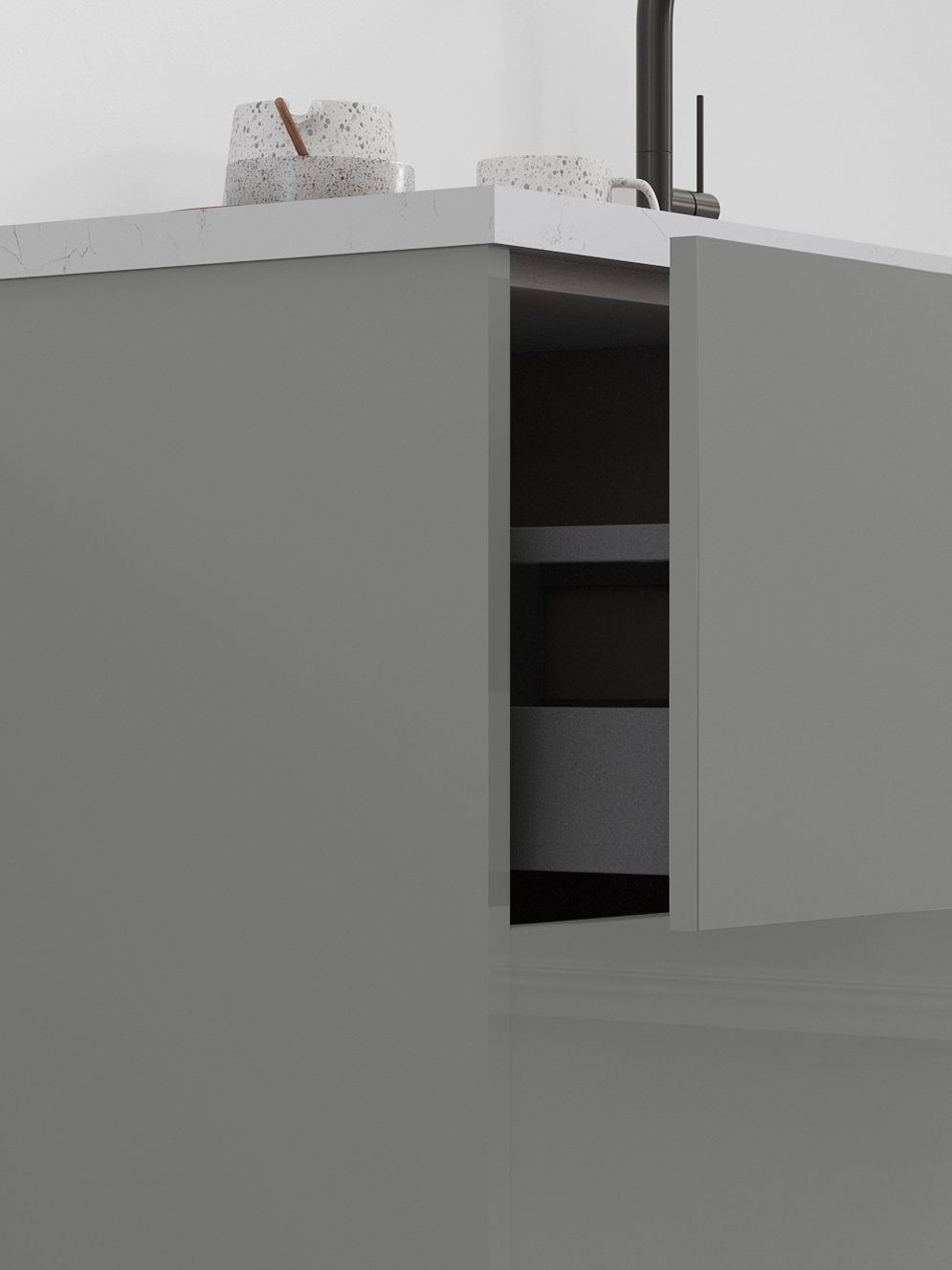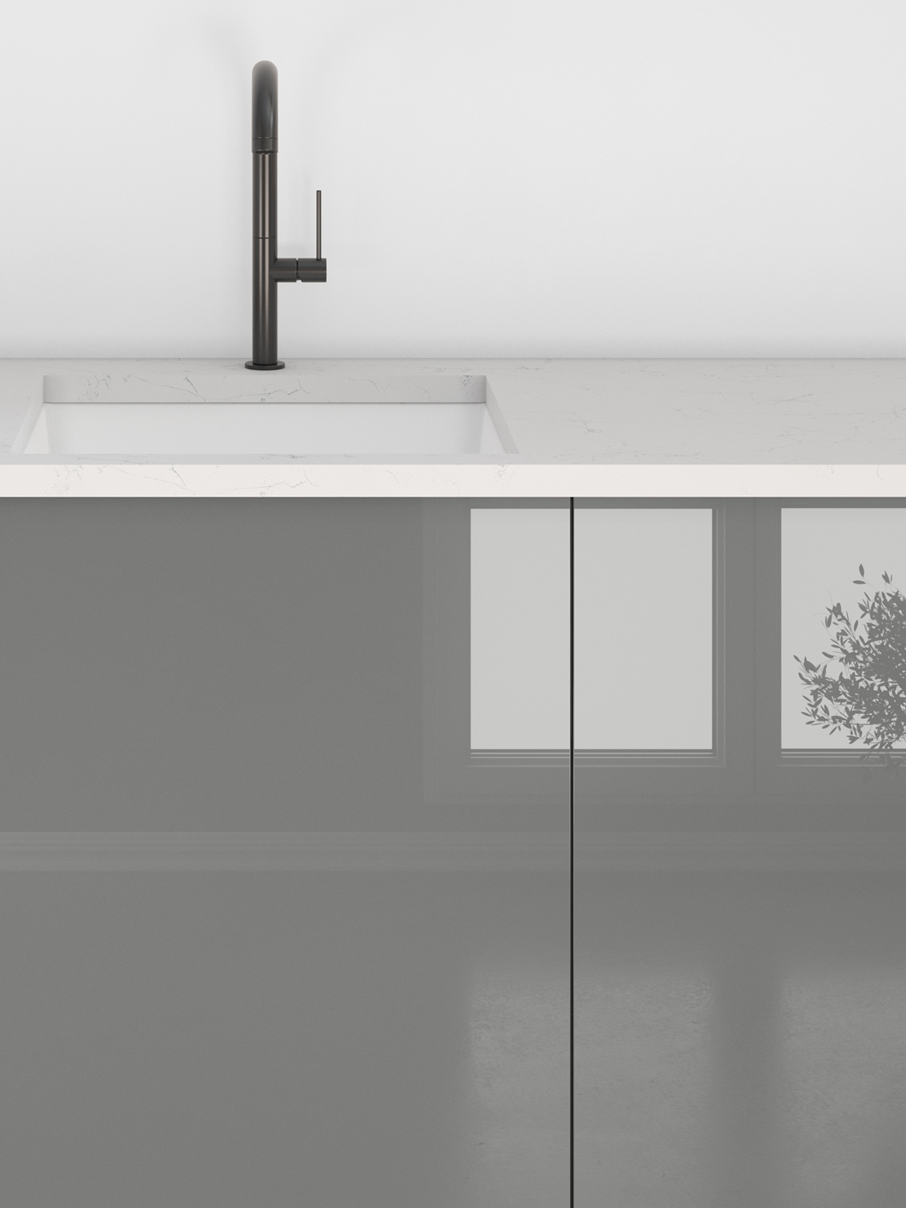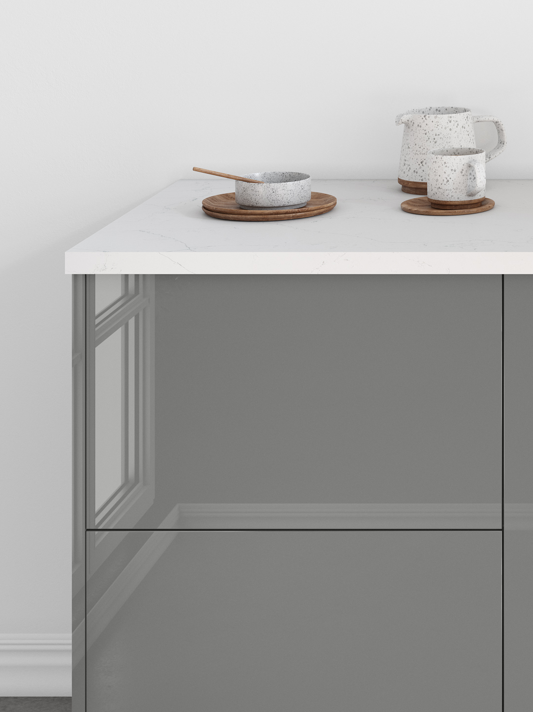 Catalina’s ultra-modern doors and Grigio Gloss’s smoky grey finish turn your home into a sleek, contemporary haven with an unforgettable touch of refined elegance.