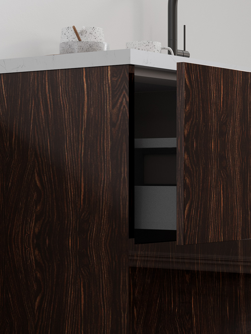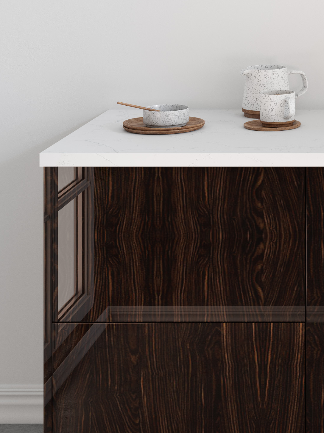 The warmth and character of Guayana’s rich tones and glossy finish, paired with Catalina’s modern style, create an effortlessly timeless look in your home.