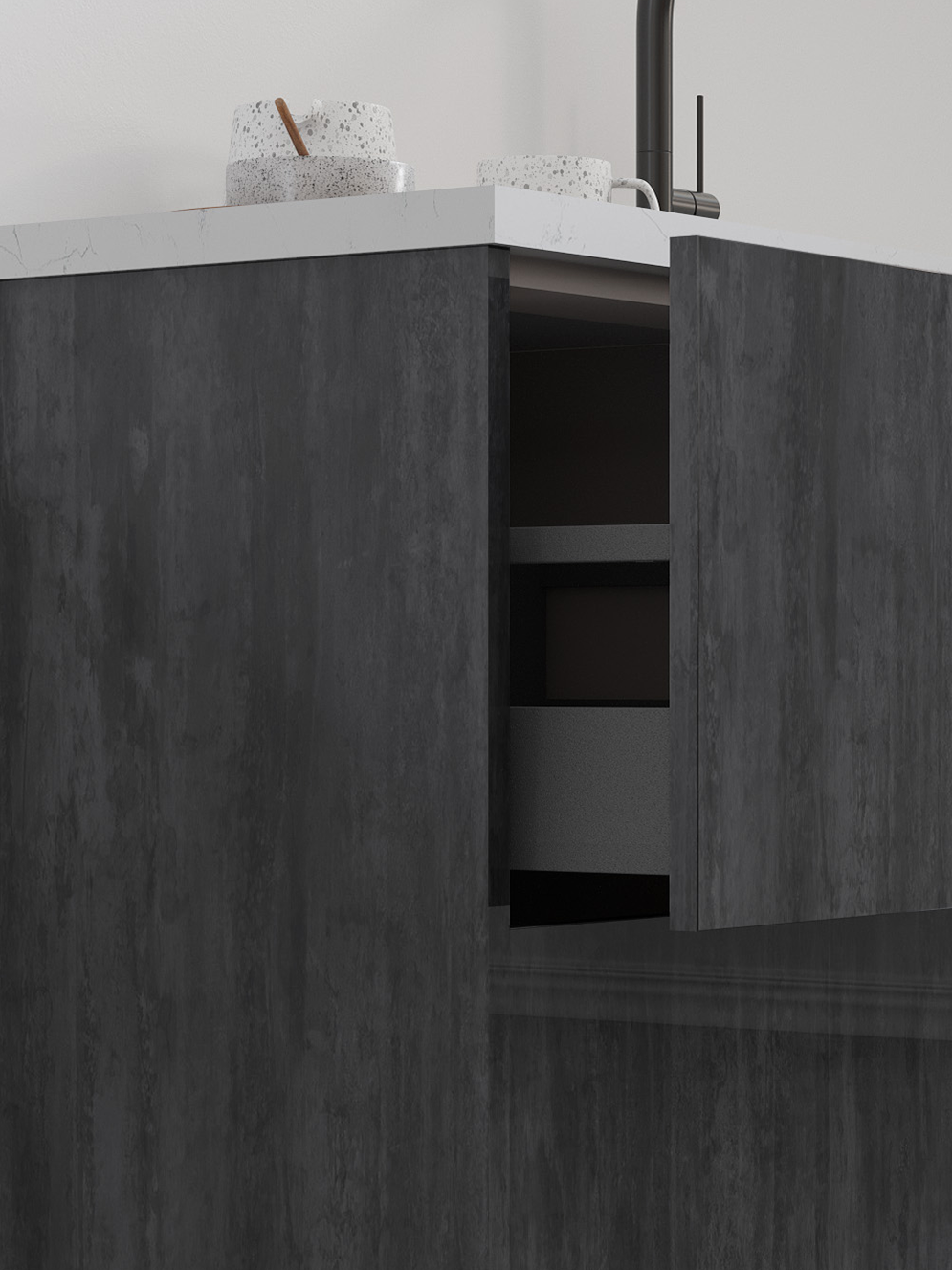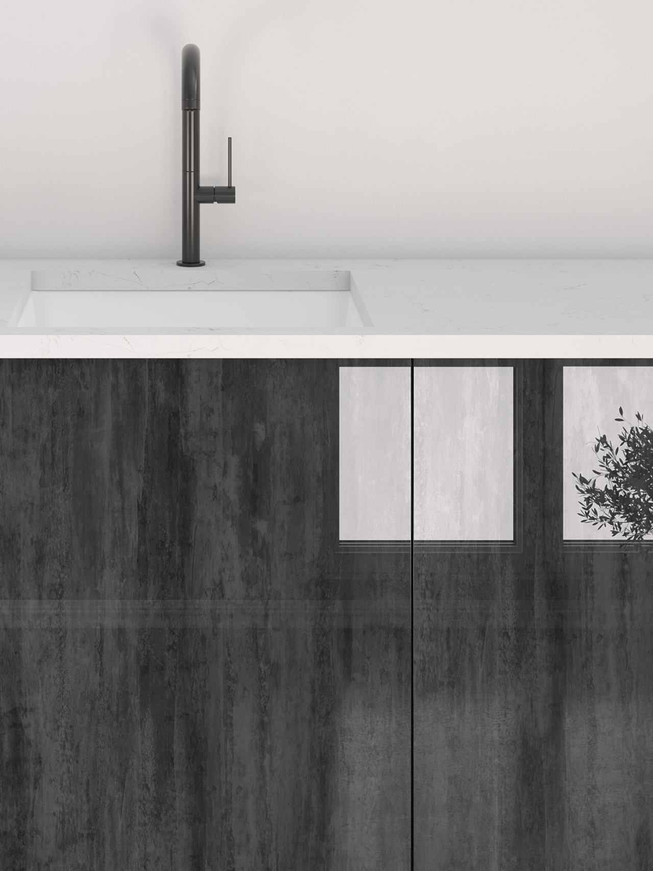 The striking mix of deep charcoal and moody graphite in Metallo 4, combined with Catalina’s super sleek design, will make your space come alive as an edgy, dramatic masterpiece.