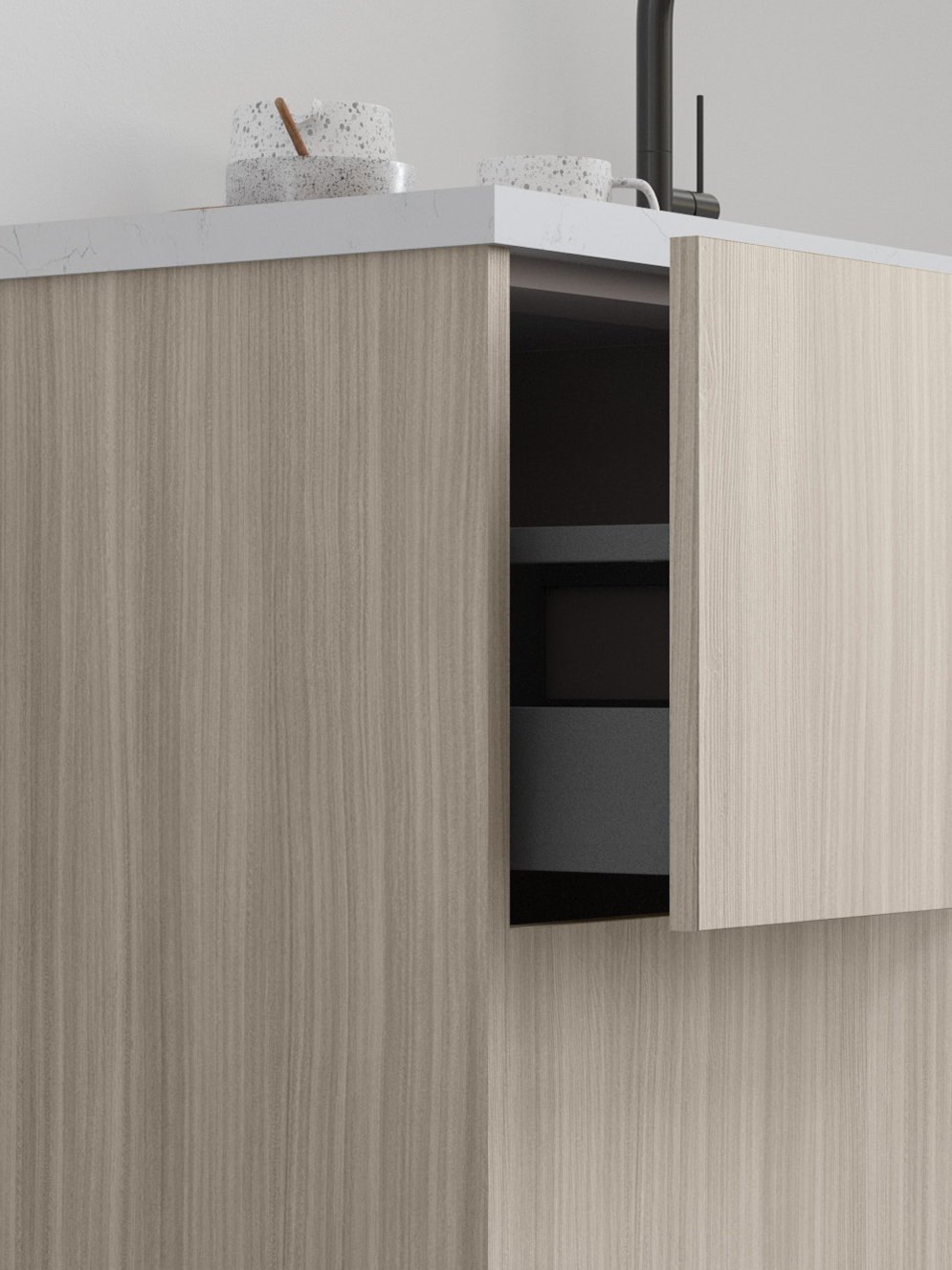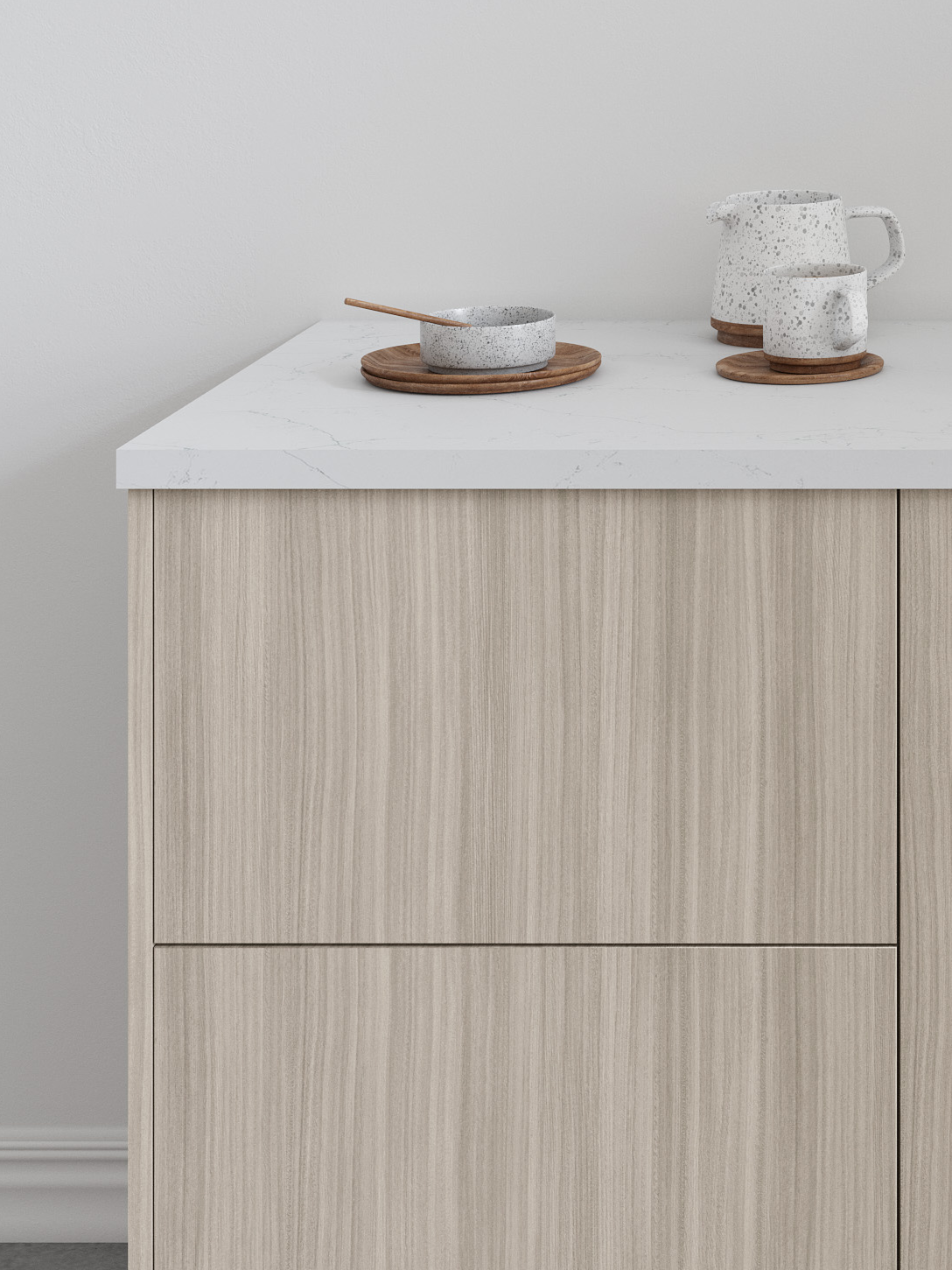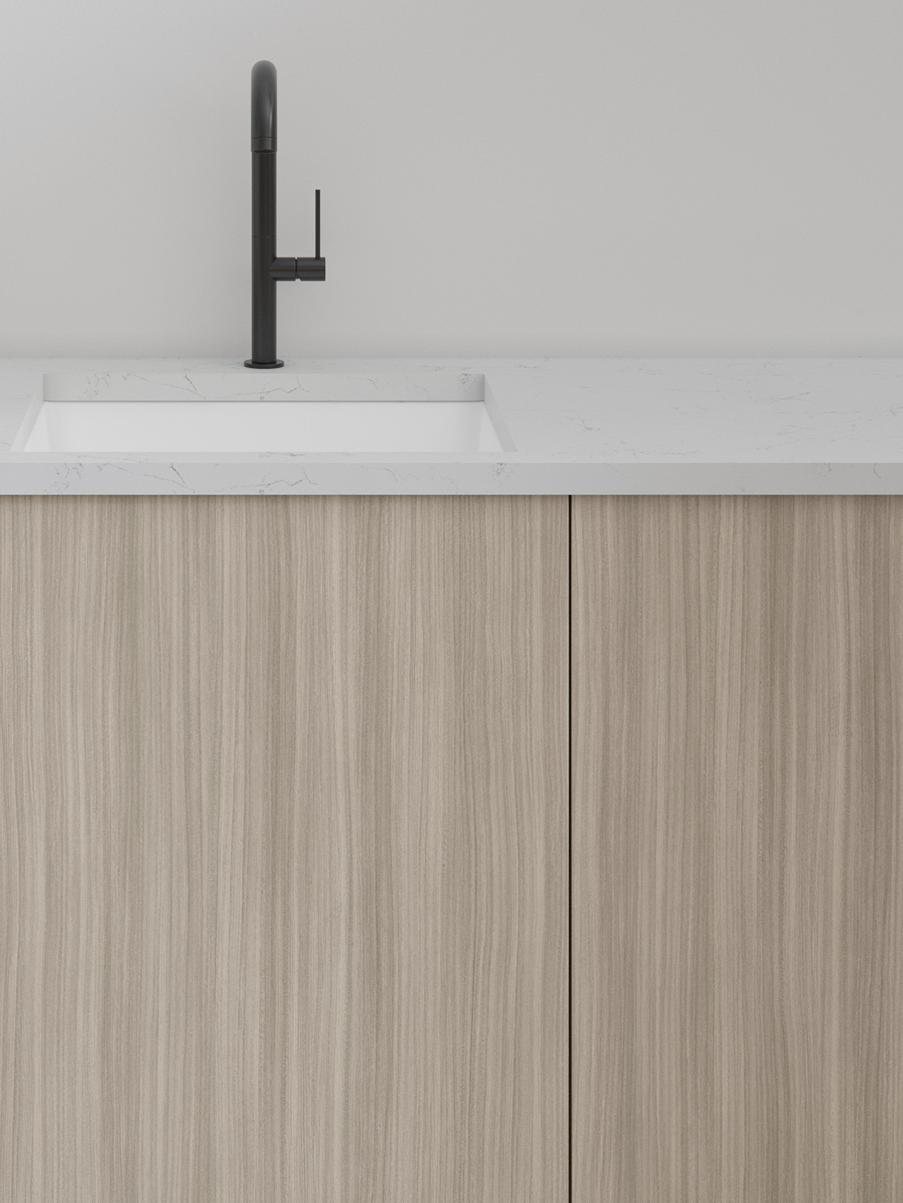 Woodline 1’s soft ivory and pale mist tones elevate Catalina's sleek and simple style. Faint hints of warm stone create a serene, airy atmosphere with timeless tranquility.