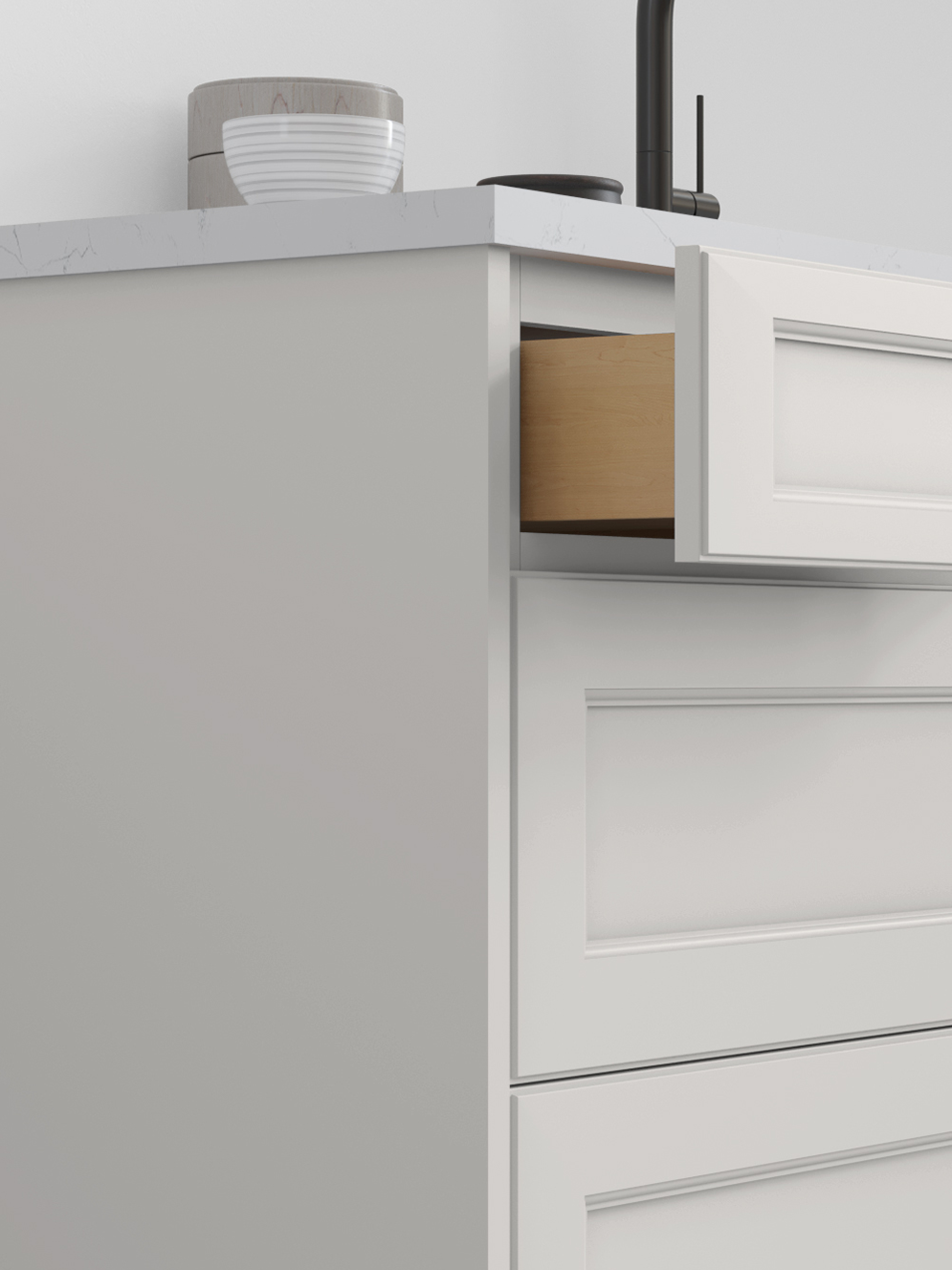 Fusion’s simple, contemporary design pairs beautifully with Cloud White’s soft, warm hue, creating a bright and airy kitchen that feels fresh, inviting, and effortlessly classic.