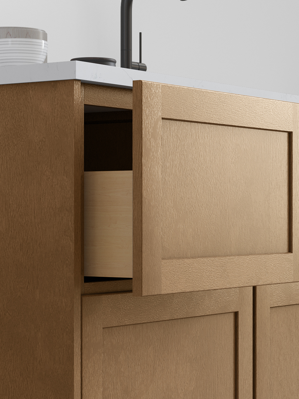 The timeless Shaker silhouette of the Galaxy door meets the luxurious, toasted tones of Truffle. This combination balances structural strength with a polished, earthy finish, creating a versatile and inviting atmosphere that defines the heart of the home.