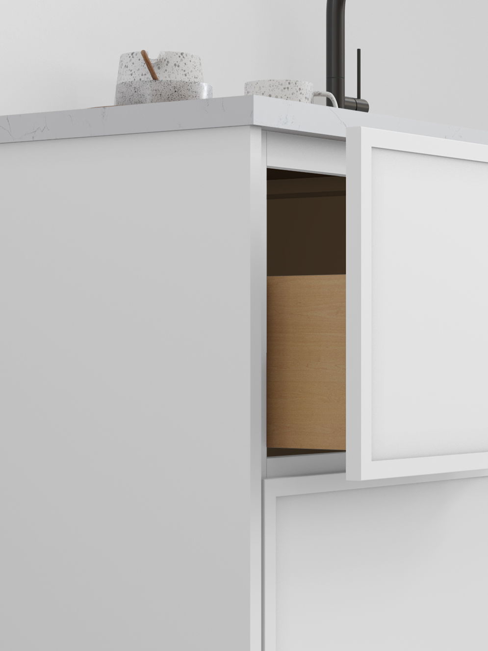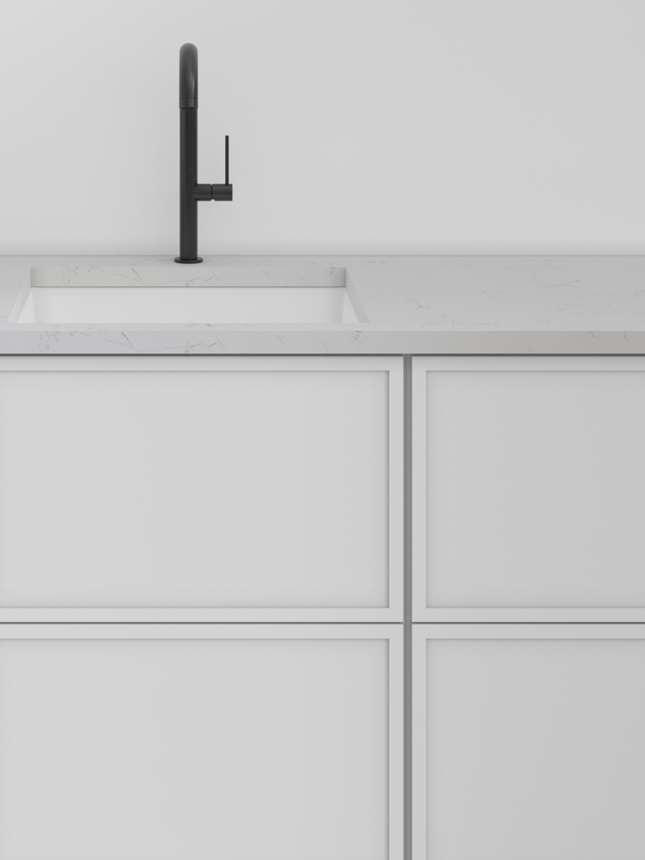 Luna’s clean, slim lines and fresh finishes deliver understated refinement in your space for a serene, modern kitchen designed for effortless living.