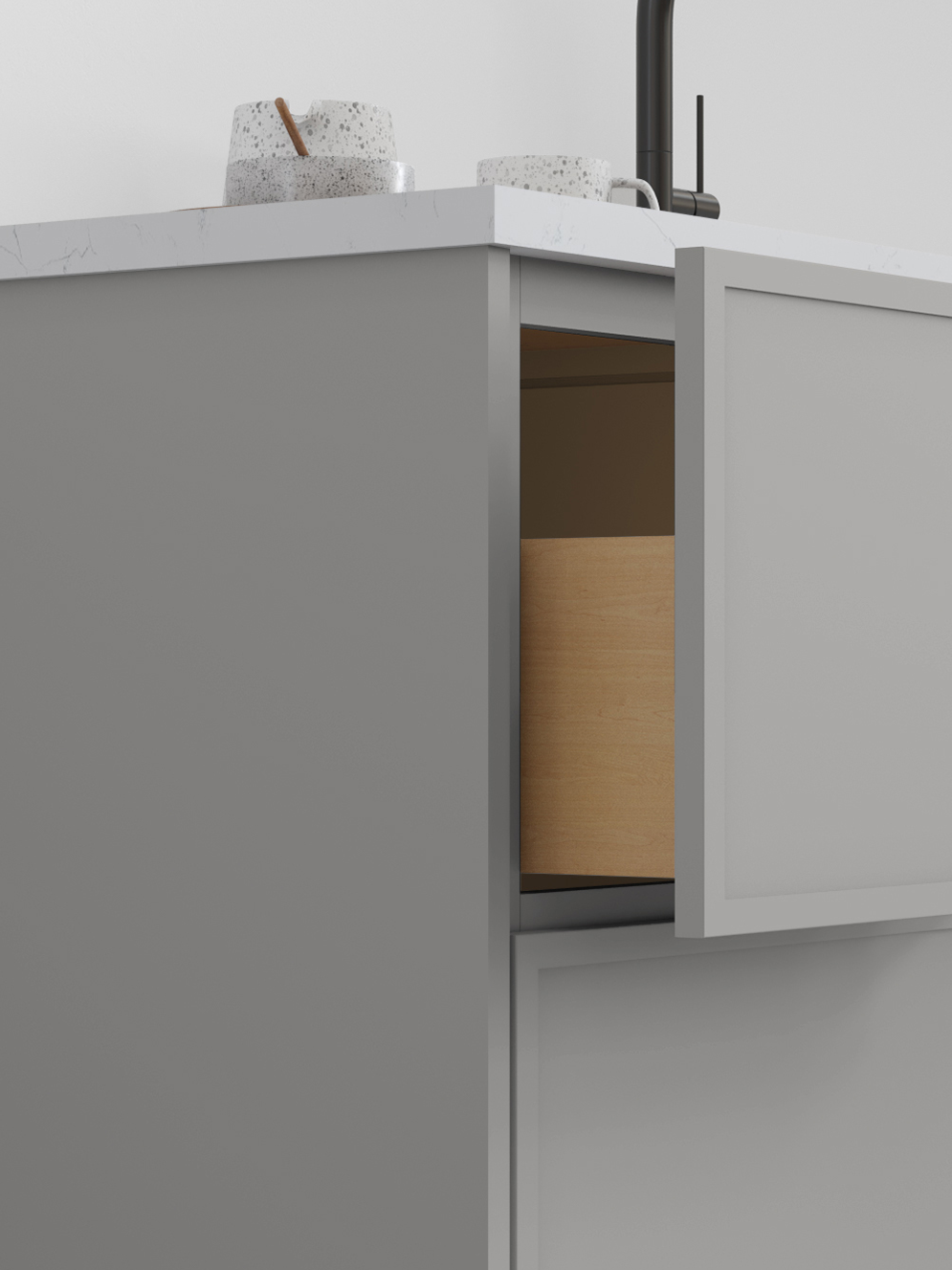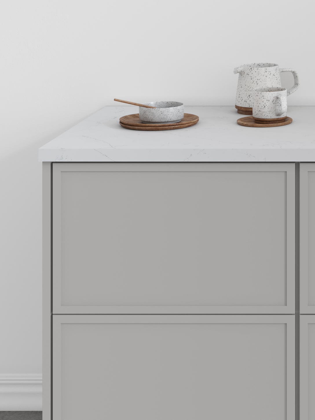 Luna’s sleek, minimalist design pairs seamlessly with Nickel’s calm gray tone, delivering a balanced, contemporary look that feels grounded, sophisticated, and refreshingly understated.