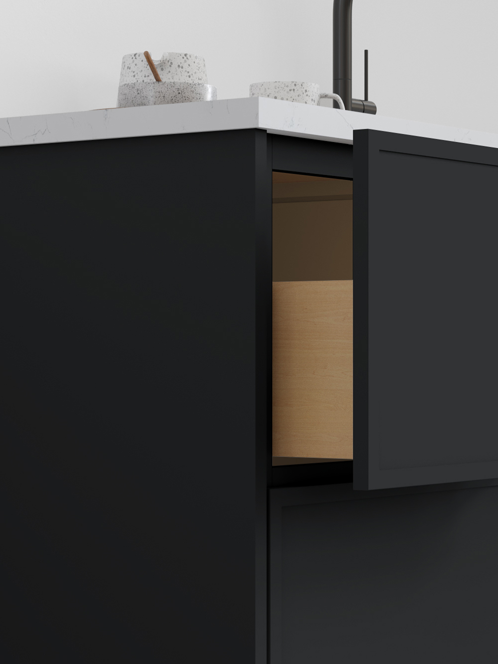 Luna’s minimalist design and Pitch Black’s bold and striking hue creates a deep and dramatic flair in your space you can’t get enough of.