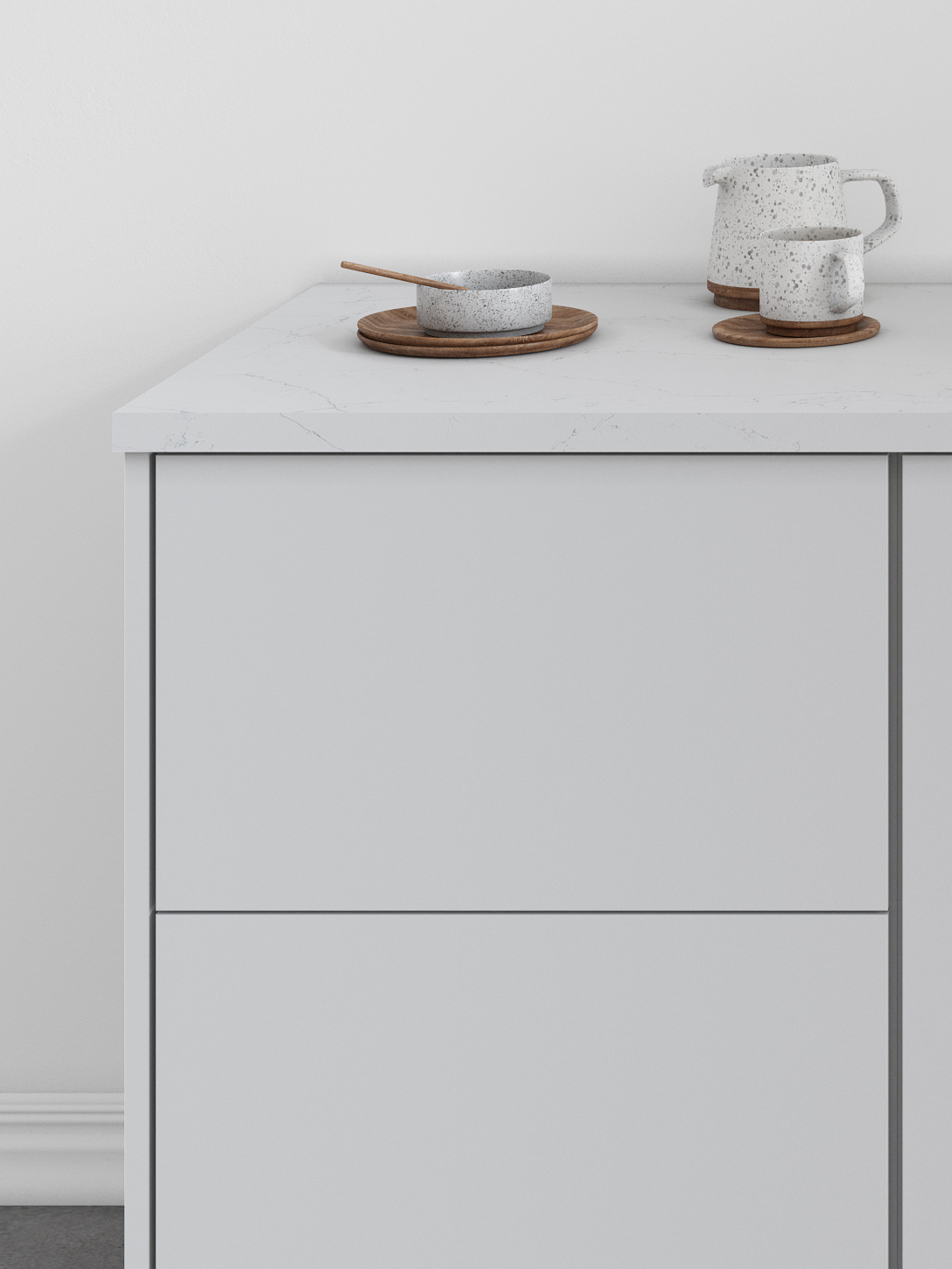 Luxe’s smooth wood-veneer styling and streamlined form deliver a sophisticated, contemporary aesthetic. Its subtle grain and minimalist silhouette bring a sense of elevated calm to kitchens designed for modern living.
