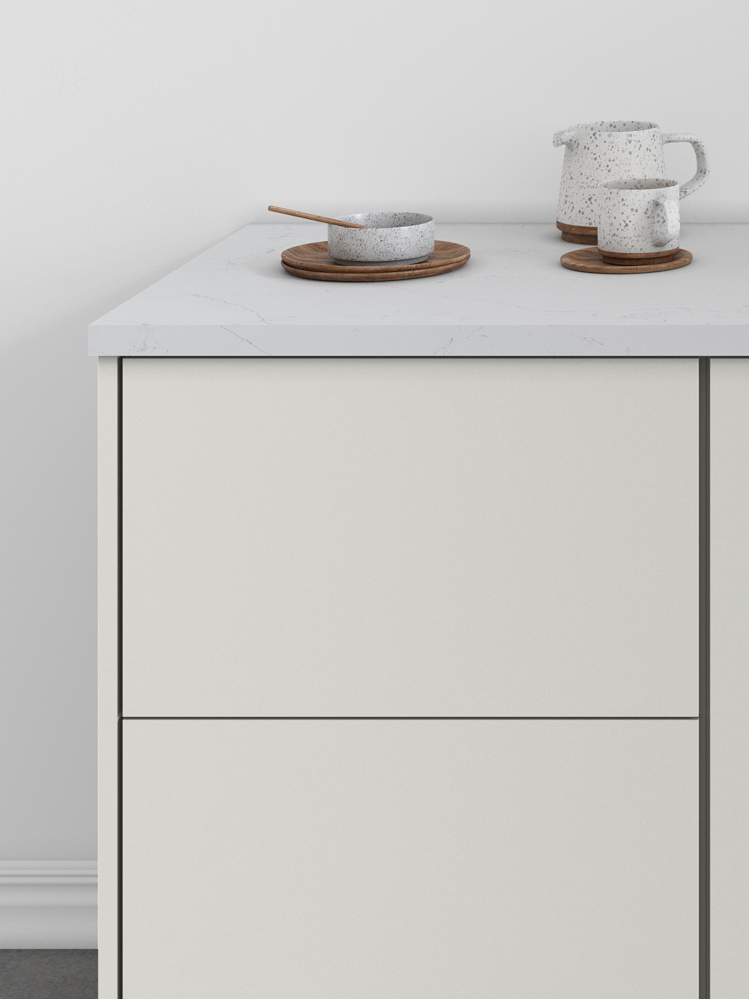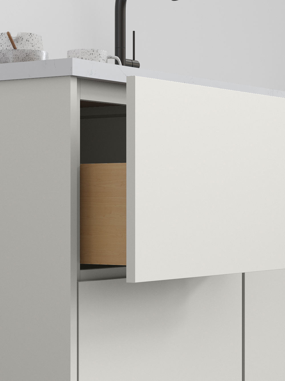 Luxe’s smooth wood-veneer styling and streamlined form deliver a sophisticated, contemporary aesthetic. Its subtle grain and minimalist silhouette bring a sense of elevated calm to kitchens designed for modern living.
