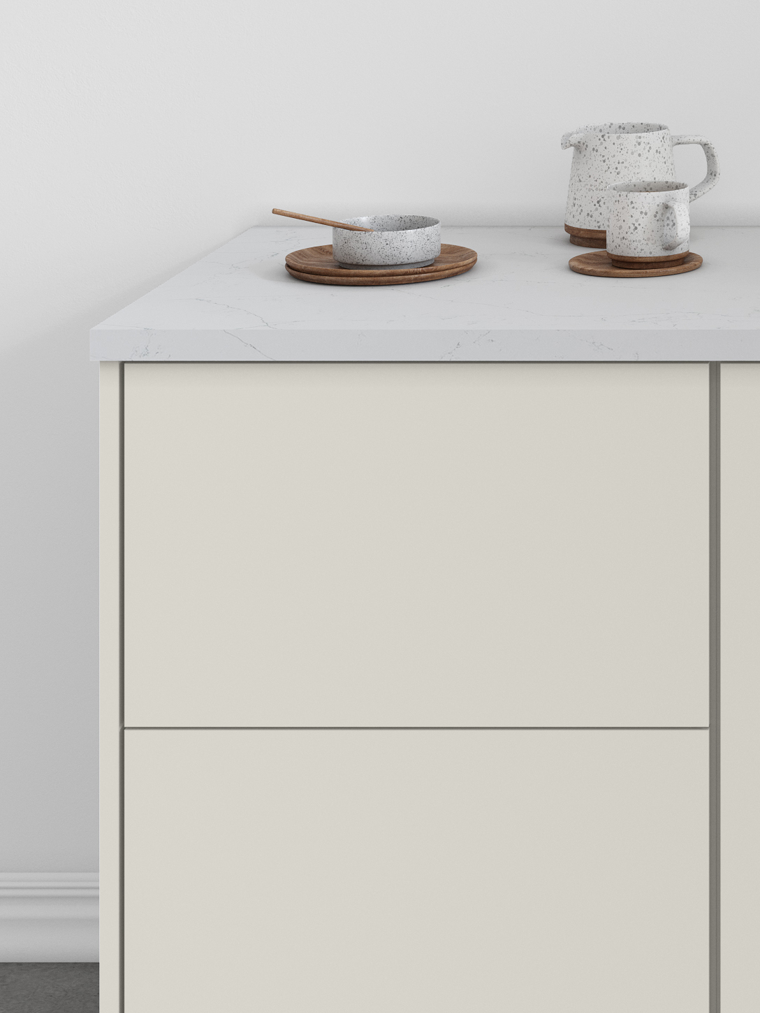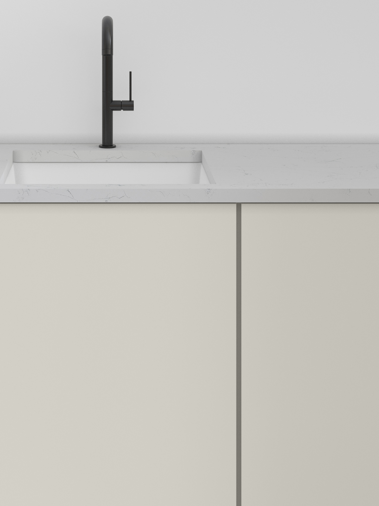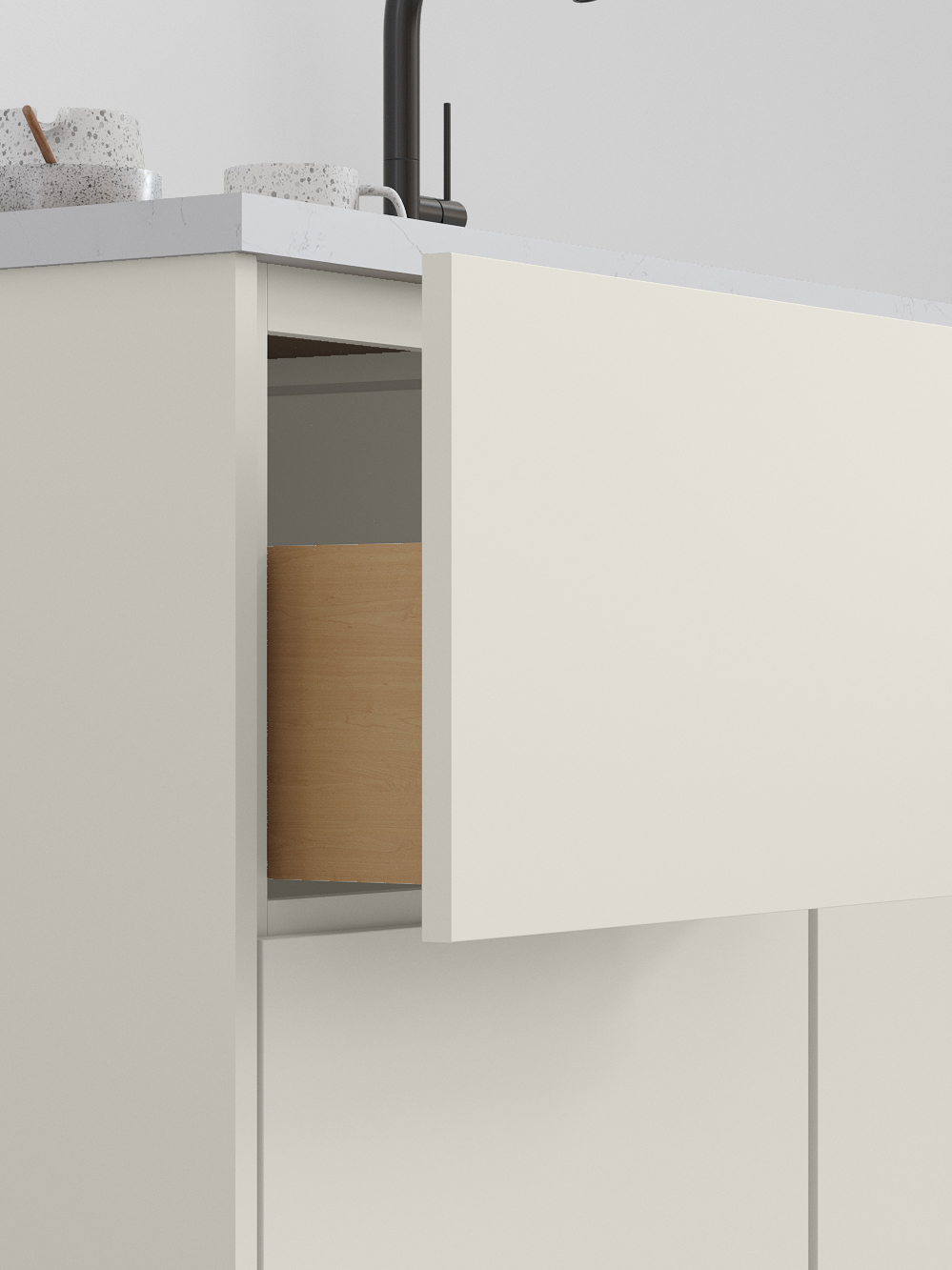 Luxe’s smooth wood-veneer styling and streamlined form deliver a sophisticated, contemporary aesthetic. Its subtle grain and minimalist silhouette bring a sense of elevated calm to kitchens designed for modern living.