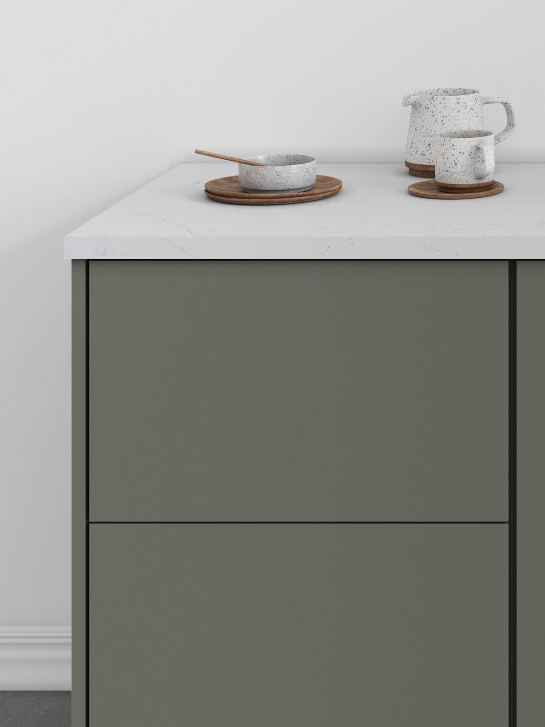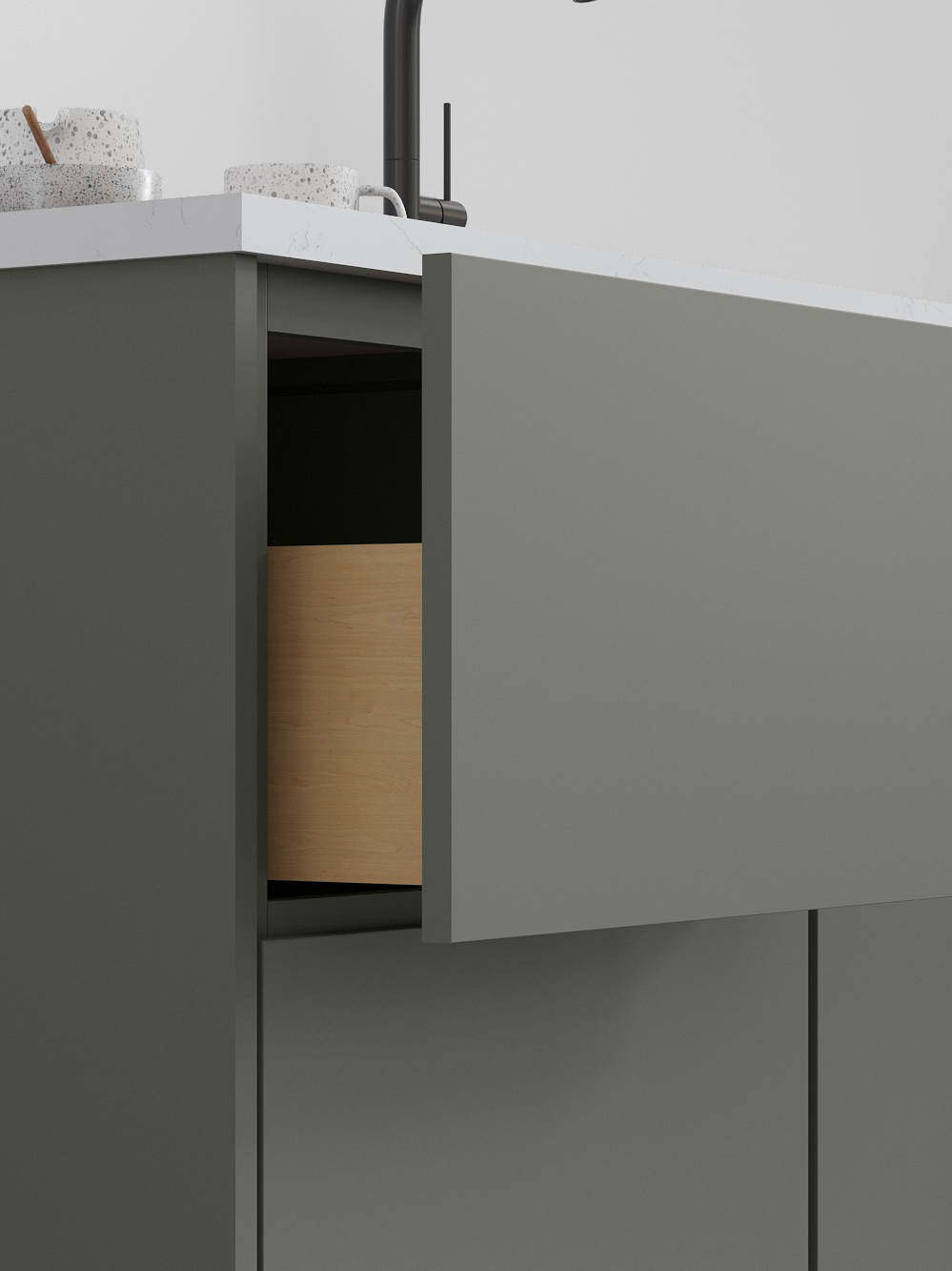 Luxe’s smooth wood-veneer styling and streamlined form deliver a sophisticated, contemporary aesthetic. Its subtle grain and minimalist silhouette bring a sense of elevated calm to kitchens designed for modern living.