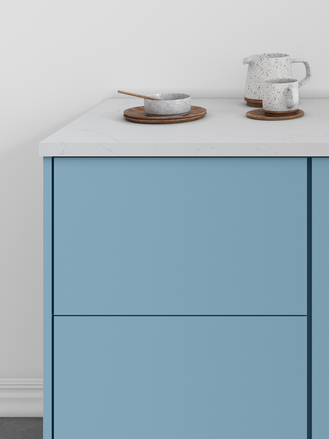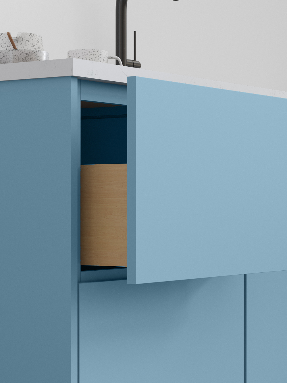 Luxe’s smooth wood-veneer styling and streamlined form deliver a sophisticated, contemporary aesthetic. Its subtle grain and minimalist silhouette bring a sense of elevated calm to kitchens designed for modern living.