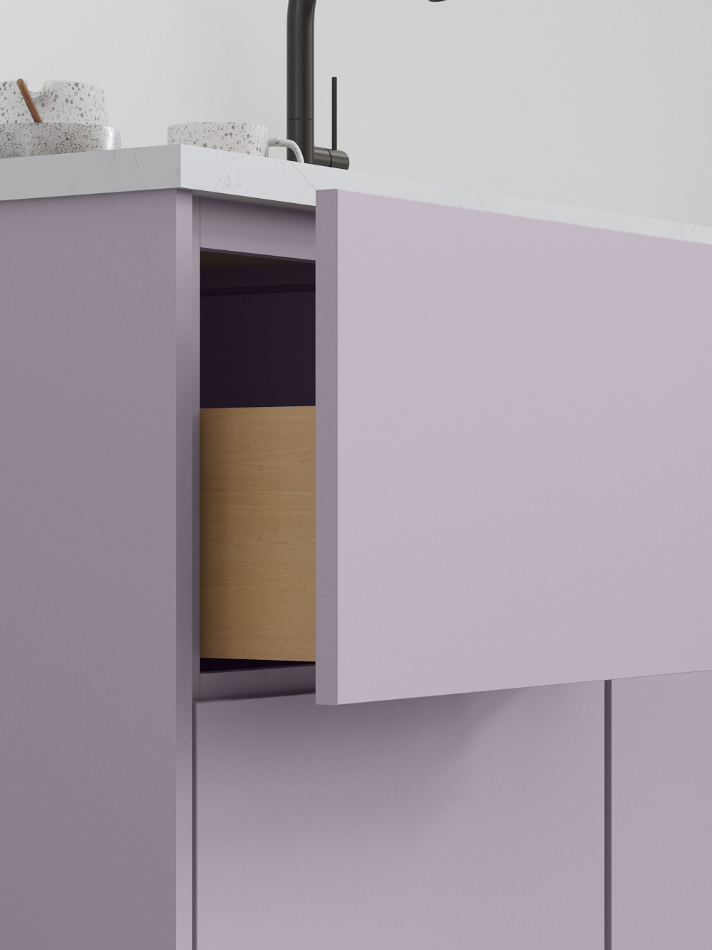 Luxe’s smooth wood-veneer styling and streamlined form deliver a sophisticated, contemporary aesthetic. Its subtle grain and minimalist silhouette bring a sense of elevated calm to kitchens designed for modern living.