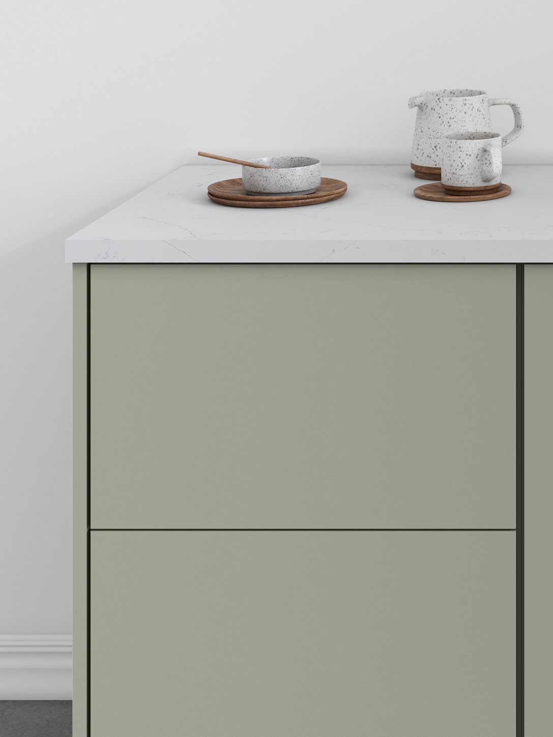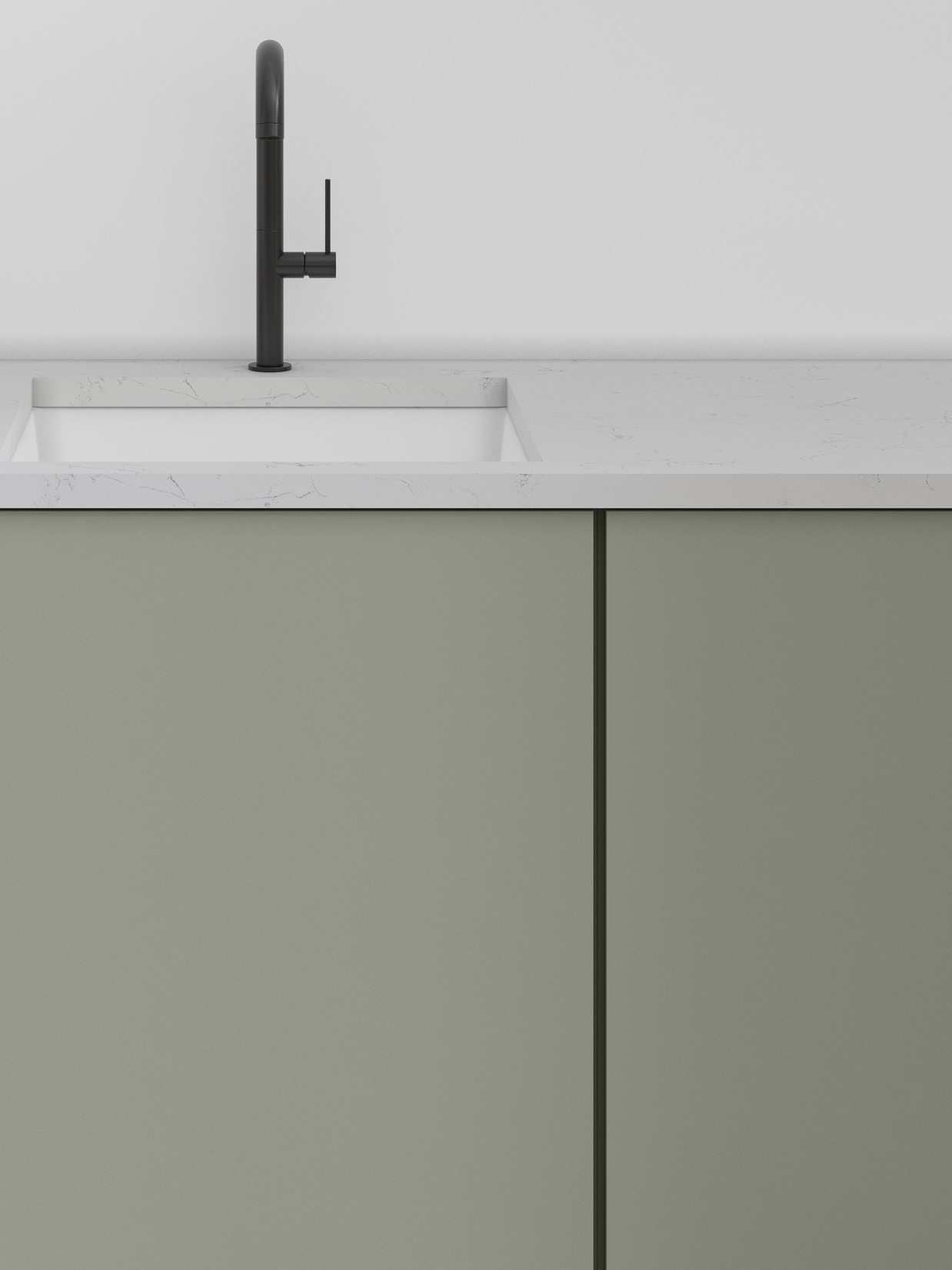 Luxe’s smooth wood-veneer styling and streamlined form deliver a sophisticated, contemporary aesthetic. Its subtle grain and minimalist silhouette bring a sense of elevated calm to kitchens designed for modern living.