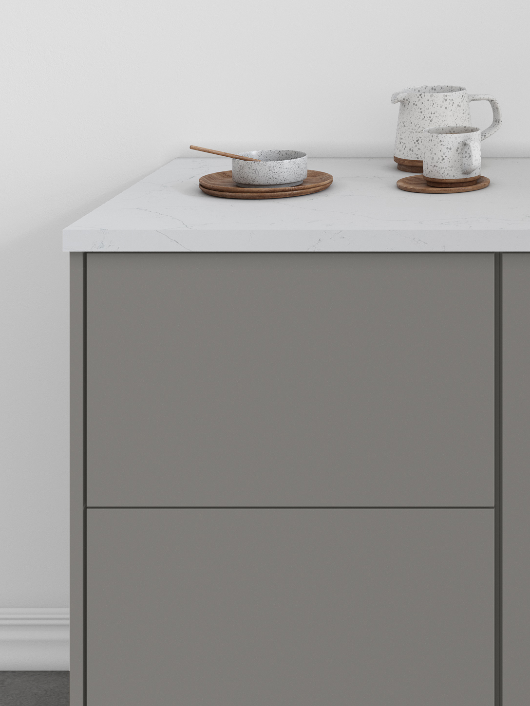 Luxe’s smooth wood-veneer styling and streamlined form deliver a sophisticated, contemporary aesthetic. Its subtle grain and minimalist silhouette bring a sense of elevated calm to kitchens designed for modern living.