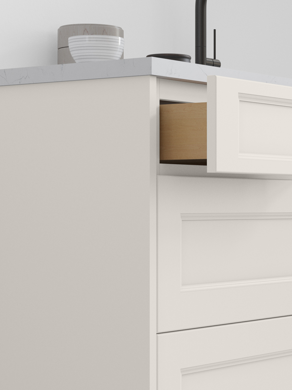 Nexus’s wide frame design and soft Dove finish create a clean, balanced look- subtle, versatile, and perfect for a calm, neutral kitchen.