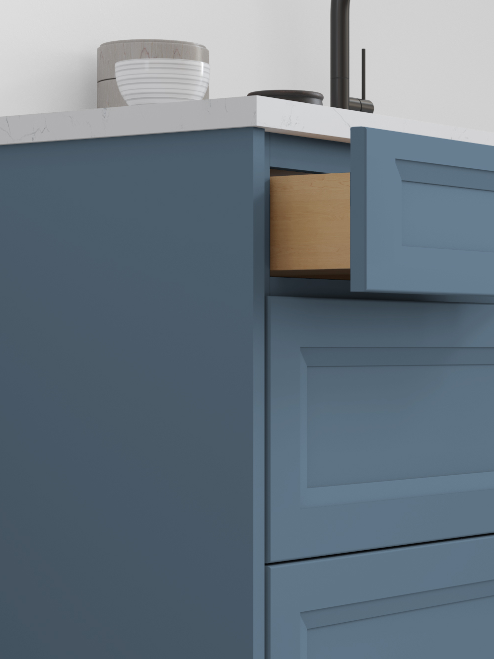Denim Blue’s rich, muted hue brings a timeless yet modern feel to Onyx’s structured design, giving your kitchen the right depth and personality.