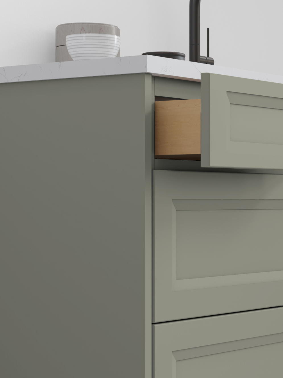With Onyx’s classic shaker style and Pistachio Green’s soft, natural tones, your home feels effortlessly fresh and welcoming, blending warmth, charm, and a hint of modernity.