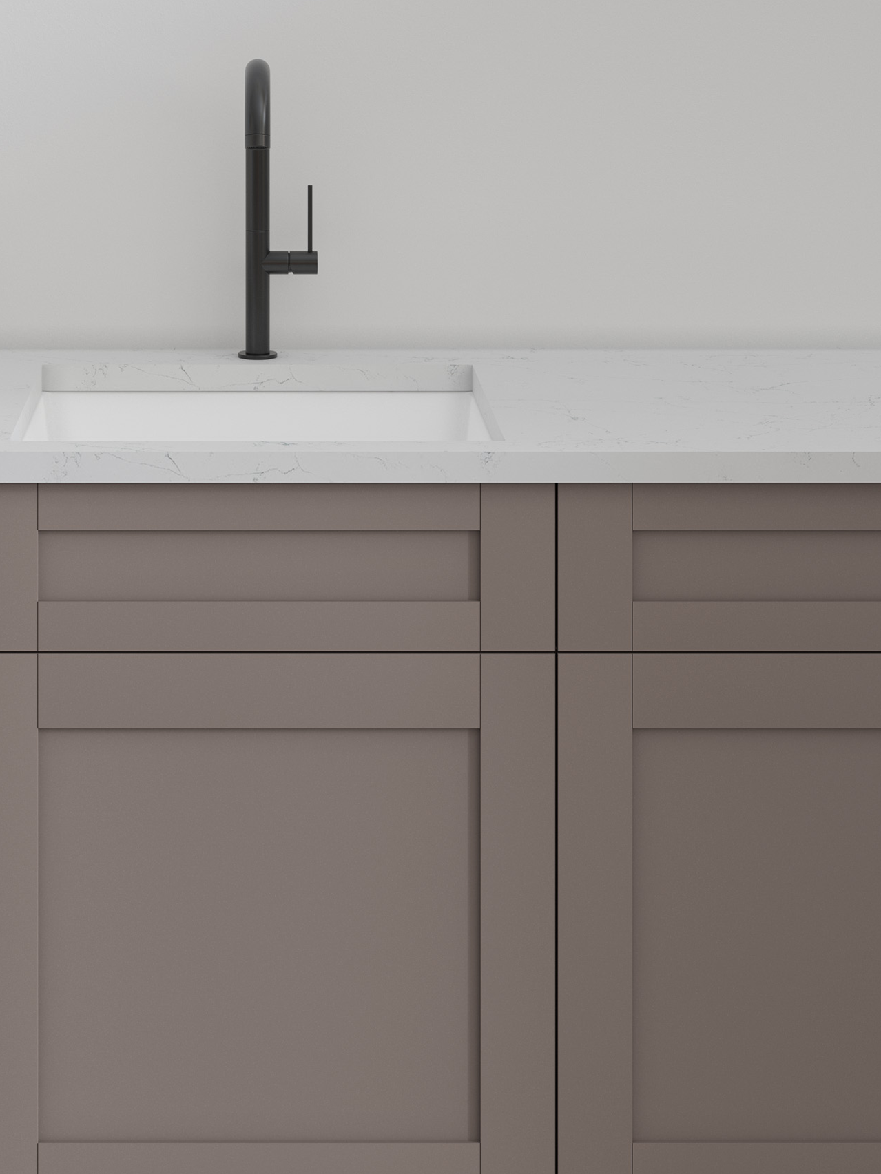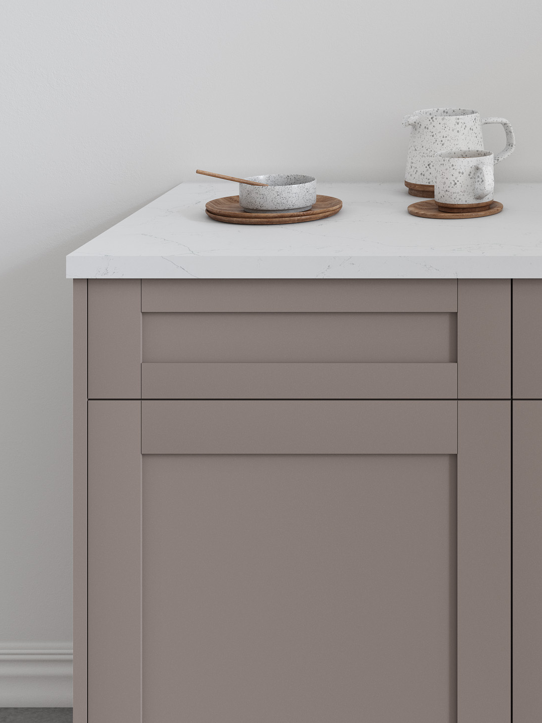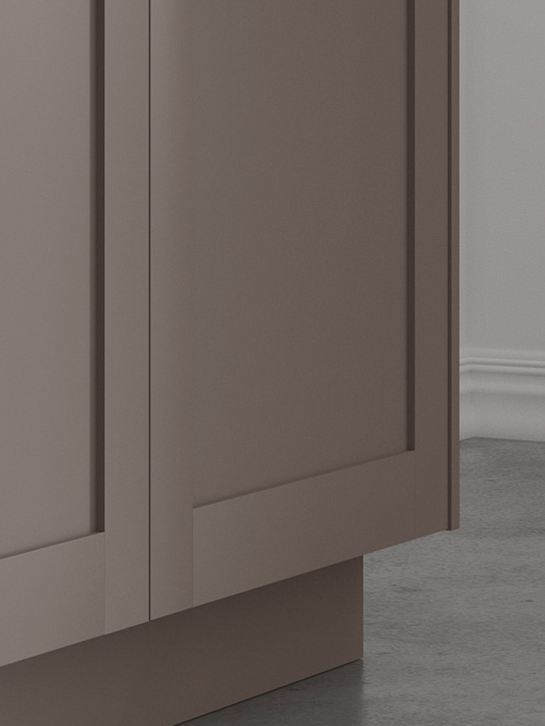 With Tuscany’s sleek, minimalist shaker-style doors and Basalto Matte’s rich taupe tones and velvety matte finish, this pairing creates a space that adds timeless warmth and style to your home.