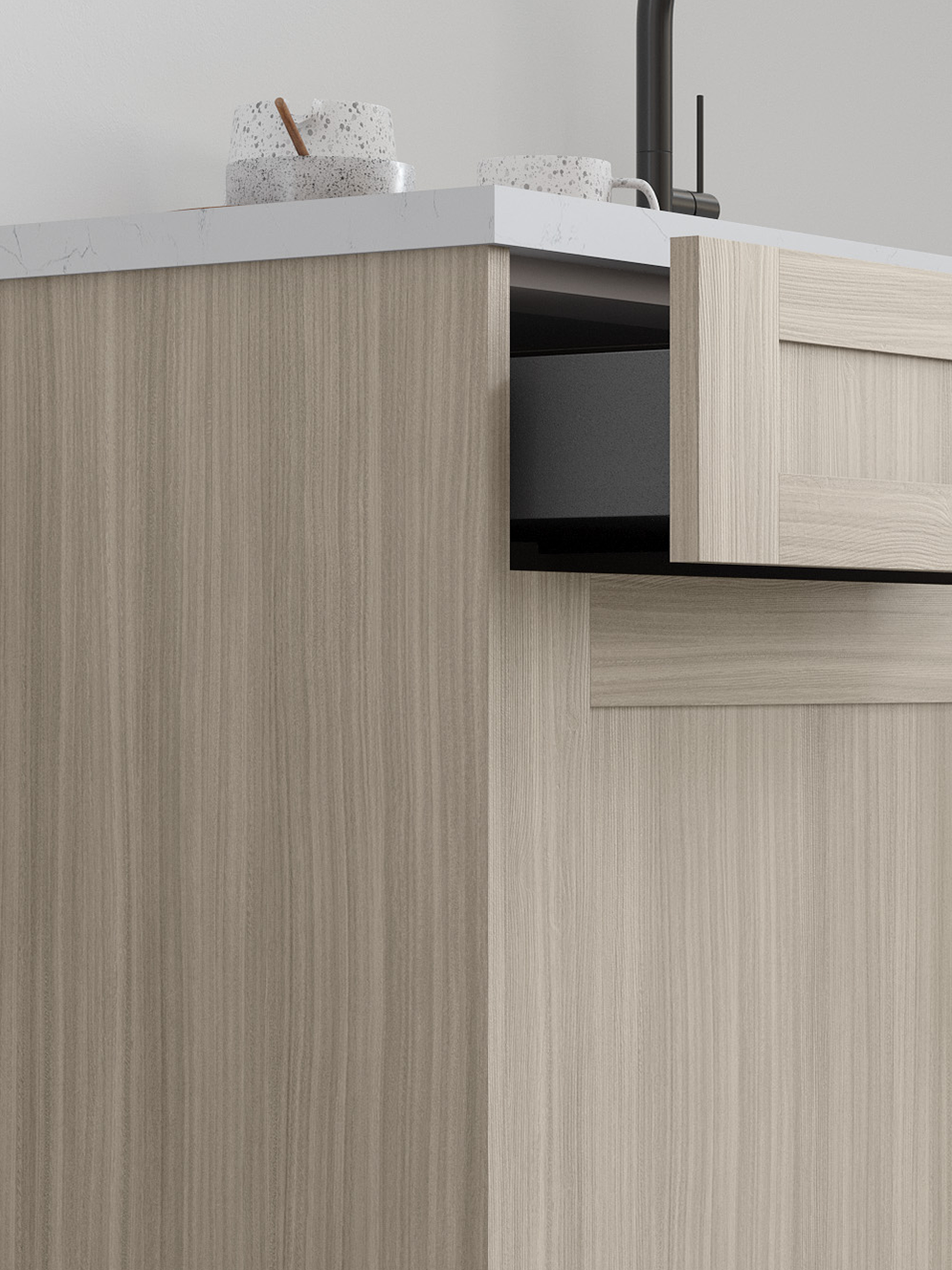 The color will vary depending on your device settings. For a more accurate view, order a sample or visit your nearest Fabuwood dealer.